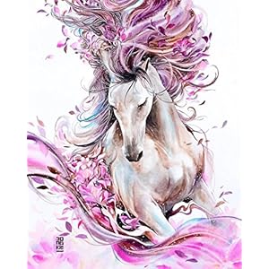 Wowdecor DIY Malen nach Zahlen Kits Geschenk für Erwachsene Kinder, Malen nach Zahlen Home Haus Dekor – Anime Weiß Pferd Lila Blume Haar 40 x 50 cm ohne Rahmen
