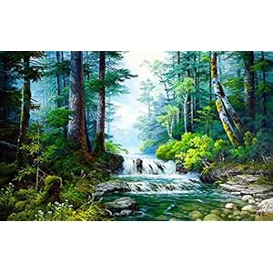 Wowdecor DIY Malen nach Zahlen Kits Geschenk für Erwachsene Kinder, Malen nach Zahlen Home Haus Dekor – Wald Grün Bäume Strom Landschaft 40 x 50 cm Rahmen
