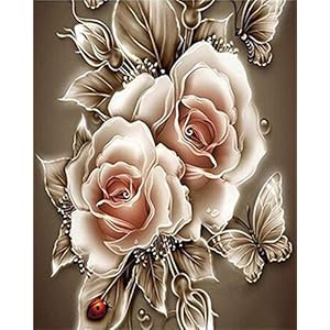 WOWDECOR DIY Malen nach Zahlen für Erwachsene Kinder Mädchen, Schön Rose Blume Schmetterling 40x50cm Vorgedruckt Leinwand-Ölgemälde (ohne Rahmen)