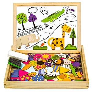 yoptote Magnetisches Holzpuzzle Staffelei Magnettafel Lernspiele Doppelseitige Tafel Holzbrett Doodle 123 Stücke Holz…