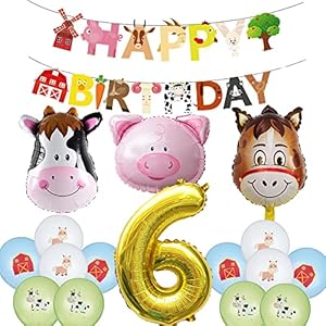 KungFu Mall 6. Bauernhoftier Geburtstagsdekoration, Bauernhoftier Ballon Geburtstagszahl 6. Folienballon Banner für…