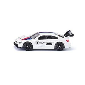 siku 1581, BMW M4 Racing 2016 Sportwagen, Metall/Kunststoff, Weiß/Multicolor, Detailgetreuer Heckflügel, Spielzeugauto für Kinder