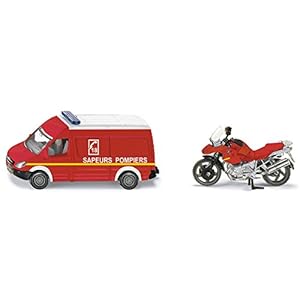 siku 1656001, Feuerwehr-Set Frankreich, Metall/Kunststoff, Rot, Spielkombination, mit Anhängerkupplung
