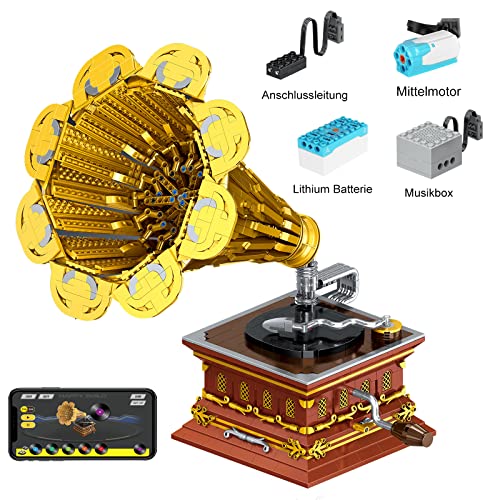 【Spezifikation】 Dieses Phonograph-Spielzeug ist mit Motorfunktion (1x Motor, 1x Lithium-Batteriebox und 1x Musikplayer) und kann mit Bluetooth des Mobiltelefons gesteuert werden. Dieses detaillierte Design lässt das Produkt realistischer und attraktiver aussehen.Die Teile sind kompatibel mit Irgend eine MarkeKomponenten und lassen sich mit anderen Markenprodukten zu einer großen Szene kombinieren.