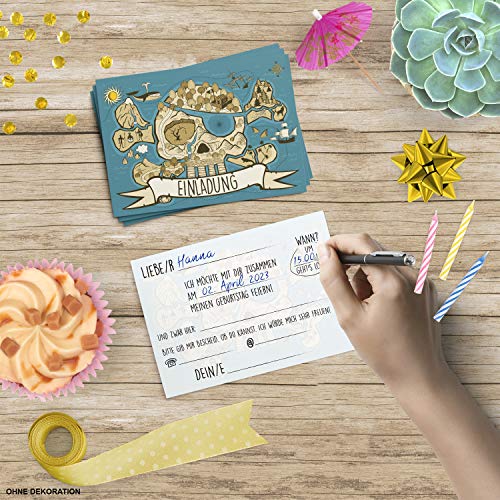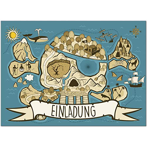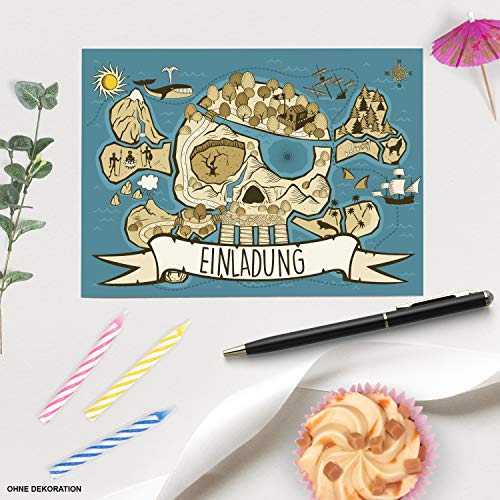 TOLLES DESIGN MOTIV: Für die bunte Piratenparty ist mit diesen entsenden Piraten / Totenkopf Karten für Kindergeburtstage die Einladung schnell erledigt.