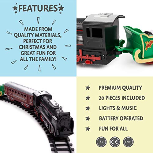 Premium-Qualität – Unser Zugset besteht nicht mehr da hochwertigen HIPS-Materialien und ist 337 cm lang, langlebig, robust und dauerhaft. Mit währenddessen ist eine farbenfrohe Schachtel mit Weihnachtsmotiven für die perfekte Präsentation.