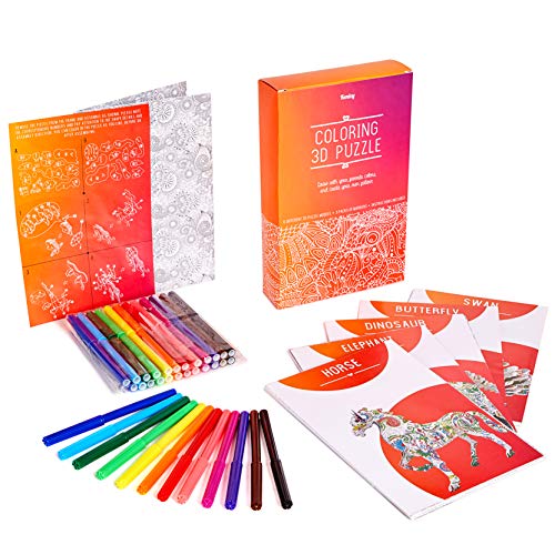 FREUDE UND TEILEN – Ausmalen macht allein oder mit Freunden Spaß. Dieses 3D-Ausmalpuzzle enthält 6 verschiedene 3D-Puzzle und 3 Packungen Stifte. Es ist genug, um sie mit Geschwistern oder Freunden zu teilen. Jedes Kunstset enthält jeweils eins der folgenden Tiere: Elefant, Löwe, Dinosaurier, Pferd, Schmetterling und Schwan.