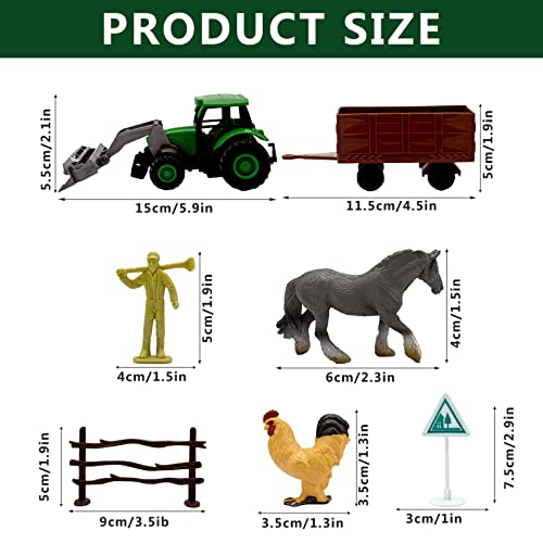 12 verschiedene Bauernhoftiere, darunter Pferde, Stiere, Kühe, Esel, Schweine, Schafe, Ziegen, Hunde, Hähne, Hühner, Enten und Gänse. 10 Ausschnitt Kunststoff-Bauernhof Zaun, 18 Ausschnitt Pflanzer Bauernhof Traktor Gefolgsmann LKW-Set, eine große Mischung von Spielzeug, um die Kinder den ganzen Tag glücklich zu halten.