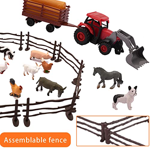 Bauernhof-Tiere Figuren Set: 12 Stil Bauernhof Tiere Figuren, einschließlich Pferde, Stiere, Kühe, Esel, Schweine, Schafe, Ziegen, Hunde, Hähne, Hühner, Enten, Gänse. 10 Ausschnitt Kunststoff-Bauernhof Zaun, 18 Ausschnitt Pflanzer Bauernhof Traktor Gefolgsmann LKW-Set, eine große Mischung von Spielzeug, um die Kinder den ganzen Tag glücklich zu halten.
