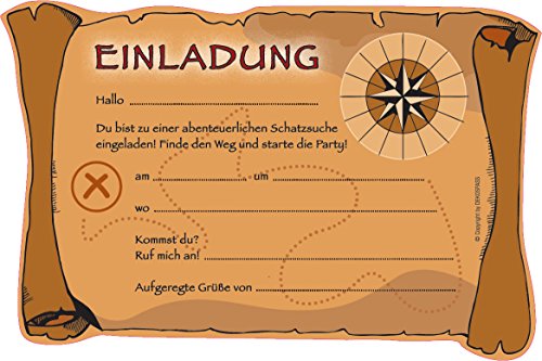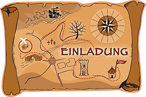 6 Einladungskarten SCHATZSUCHE in Motivform gestanzt. Exakt das Richtige statt ein Kindergeburtstag. Mit diesen Einladungskarten wird ganz Kindergeburtstag ein Erfolg. Wer keine Einladungen verschickt/übergibt muss sich über ausbleibende Gäste nicht wundern!