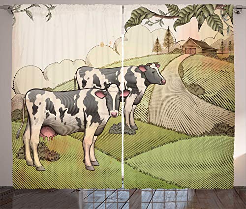 ABAKUHAUS Bauernhoftier Rustikaler Gardine, Milchkühe Land, Schlafzimmer Kräuselband Vorhang mit Schlaufen und Haken, 280 x 225 cm, Mehrfarbig
