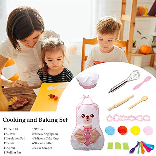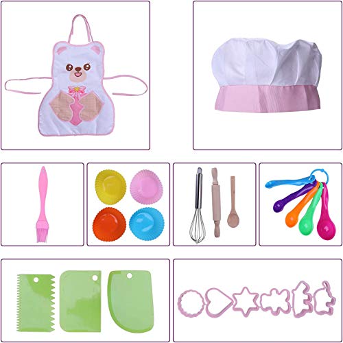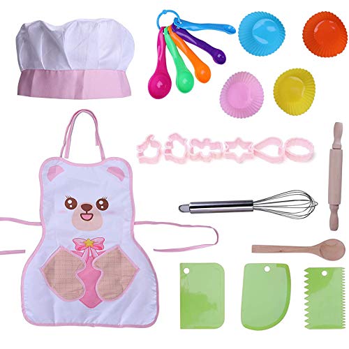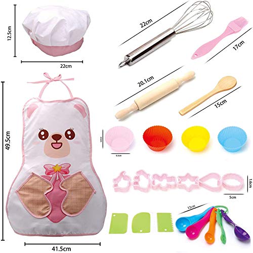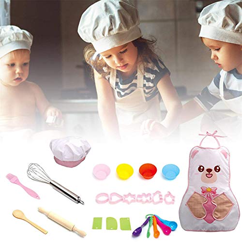 Kinderkoch-Rollenspielset: 24 Bereich / Set, einschließlich 1 Kochmütze, 1 Bürste, 1 Schürze, 1 Stabmixer, 1 Holzlöffel, 1 Stab, 5 Messlöffel, 3 Kuchenschaber, 4 x Kuchenfutter und 6 x Ausstechformen. Passend stattdessen die meisten Kochbedürfnisse kleiner Köche.