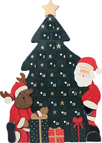 Bildschöner Adventskalender im nostalgischen Design mit 3D-Applikationen. 24 Schubladen statt dessen Kleinigkeiten helfen die Zeit bis zur Bescherung zu schmackhaft machen!