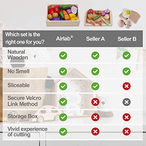 Airlab Küchenspielzeug für Kinder aus Holz, Kinderküche Zubehör, Schneiden Obst Gemüse Lebensmittel Holz mit Klett-Verbindung, Küche Spielzeug Lernspielzeug Geschenk für Kinder