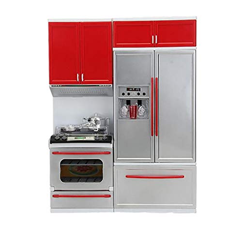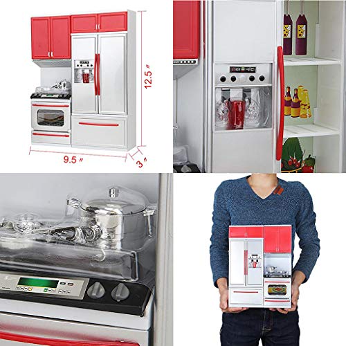 Realistisch – Unsere lebensechte Spielküche in Kindergröße verfügt über einen Eine Anordnung von Schränken, einschließlich Obst, Sauce, Wein und eine Anordnung von Tassen und Tellern; ein Satz Herd, einschließlich einer Pfanne, einer Pfanne, einem Löffel und einer Schaufel. Ofenbatterie: 2 x AAA-Batterie (nicht im Lieferumfang enthalten), damit Ihre Kinder das Zubereiten von Speisen