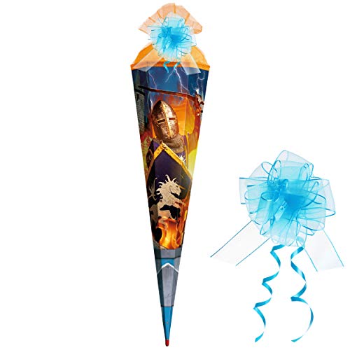 10 Phase _ stabile & hochwertige – Schultüten – 50 cm lang – die obere Kante hat einen Tüllabschluß – Form: RUND ___ Motiv: “ Samurai & Ritterburg “