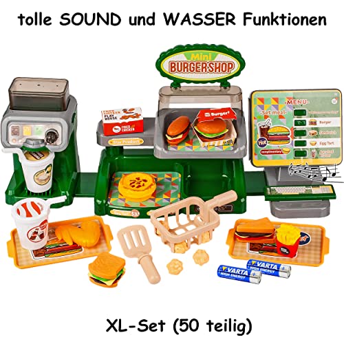 52 tlg. XL Set – große Burger Station _ mit viel Zubehör ____ tolle SOUND und WASSER Funktionen & soo viel Spielspaß ! _______ ein tolles Spielset für den Kaufmannsladen, die Kinderküche und als Rollenspiel !