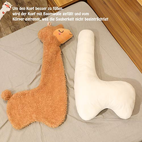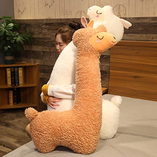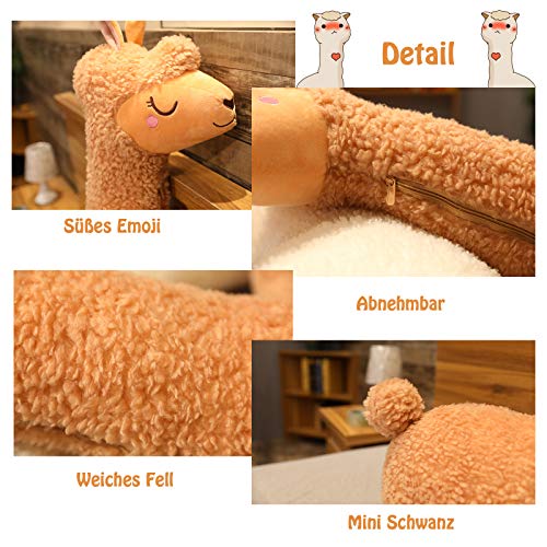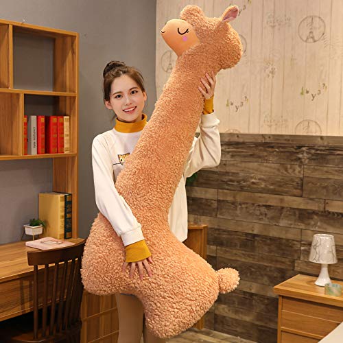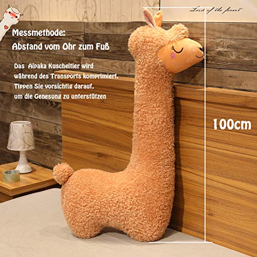 100cm Alpaka Kuscheltier, Alpaka-Plüschtier mit langem Hals, Weiches Alpaka-Kissen-Stofftier, Long Neck Plüschtier, Nettes Alpaka-Plüschtier, Sofakissen Kissen Cartoon Gefüllte Puppen (Braun, 100cm)