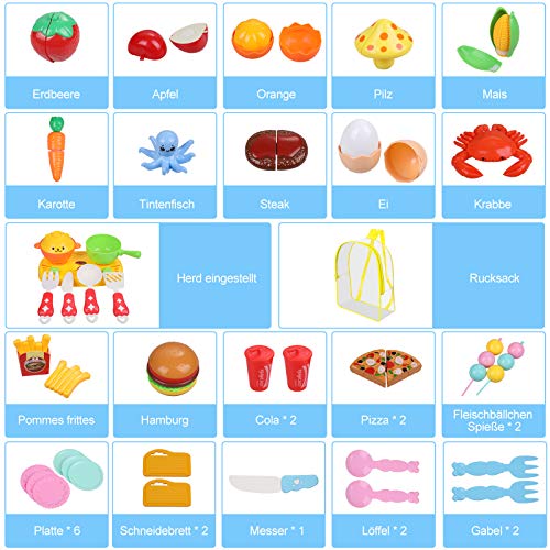Anpro 43 STK Spielküche zubehör kinderküche zubehör, Schneiden Obst Gemüse Lebensmittel Geschirrküchenspielzeug…