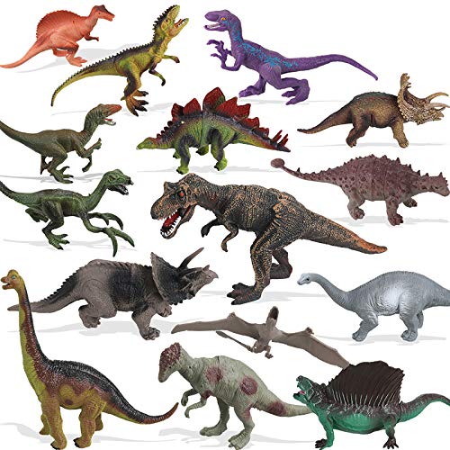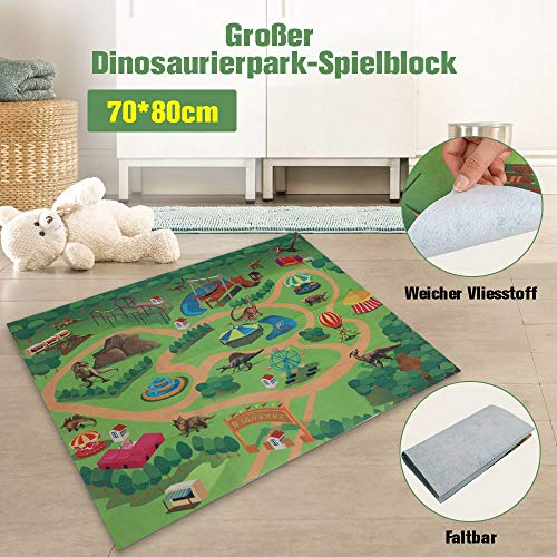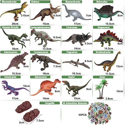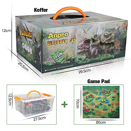 Anpro Dinosaurier Spielzeug, 15Stk Dinosaurierfiguren mit 50 Stück Dinosaurier-Aufkleber, Spielmatten & Bäume für Kinder…