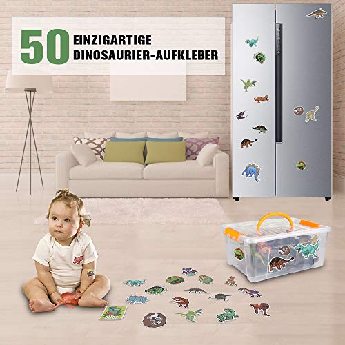 Verschiedene Arten: Dieses Set enthält 15 Arten von Dinosauriern: Riesendrache, Einhorn, Donnerdrache, Heterodontosaurus, Sicheldrache, Pneumocystis, Triceratops, Stegosaurus, Ankylosaurus, Tyrannosaurus, Flugsaurier, Dilophosaurus, Velociraptor, Spinosaurus, Raubvogel. Ausgestattet mit 50 sich nicht wiederholenden Dinosaurier-Aufklebern können diese nach Belieben oder an der Wand an jedem Körperteil nach Maß werden, in Folge dessen Ihr Kleiner in der Dinosaurierszene realistischer ist.
