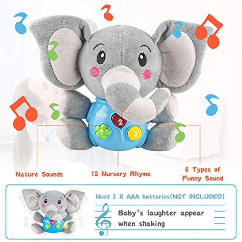 🐘Musikspielzeug – Die Kleinkind-Soundspielzeuge sind im 3-Modus erhältlich: Botton 1 mit Naturgeräuschen, Botton 2 mit 12 Nyrsery-Reimen, Botton 3 mit 6 Arten von lustigen Sounds. Umsetzen Sie die Wahrnehmung von Sound und Musik durch Kinder und verstoffwechseln Sie das Interesse von Kindern Wenn Sie den Elefanten schütteln, wird ein Baby zum Lachen gebracht. Benötigen Sie 2 x 1,5 V AA-Batterien (NICHT INKLUSIVE)