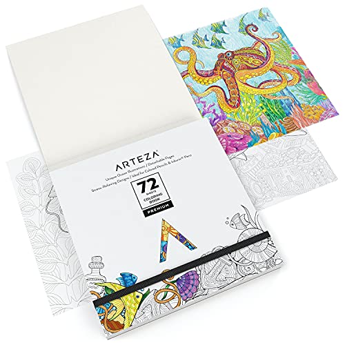 Arteza Ozeanmuster Malbuch für Erwachsene, 16.2 x 16.2 cm, Ausmalbuch mit 72 Motiven, abnehmbare 150 g/m² Blätter, schützendes Cover mit elastischem Band, für Anti Stress und Entspannung