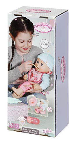 Baby Annabell Fütterspaß anhand lebensechten Funktionen kann schlafen, essen, macht richtige Mundbewegungen, gibt Geräusche von sich und kann auf Retirade ein „großes Geschäft“ hervorbringen