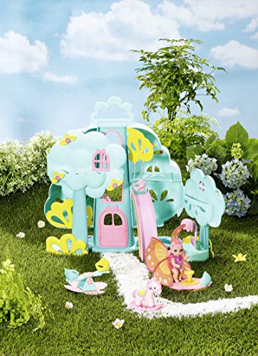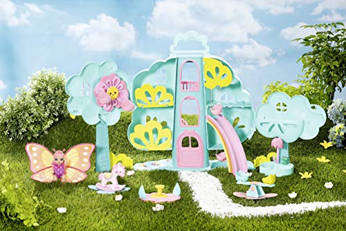Baumhaus – Spielset zum vielerorts mit auf sich nehmen mit vielen Spielplatz Überraschungen: Regenbogenrutsche, Schaukel, Fahrstuhl, Schaukelpferd, Wasserspiel mit süßer Lilien- Dusche und Pool. Mit exklusiver Wings- Puppe. | Warnhinweise | Nicht für Kinder traurig 36 Monaten entsprechend.