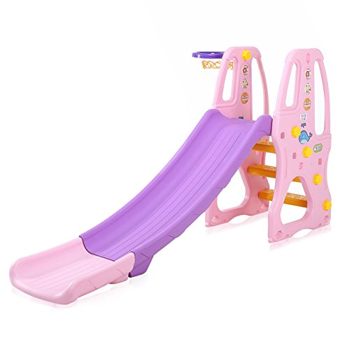 Baby Vivo Kinderrutsche / Rutsche mit Basketballkorb – Lila / Rosa