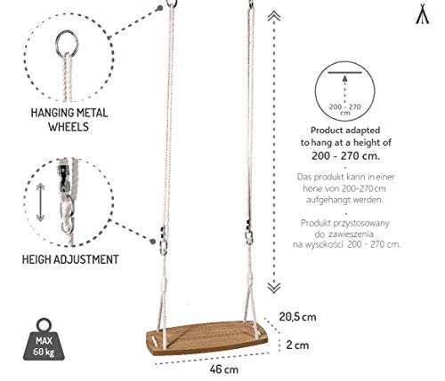 ✔UNIVERSELL: Das Produkt ist für innen und außen adäquat. Wir gehören zu Wenigen, die handkehrum ökologische, wasserabweisende, NACH EN 71 ZERTIFIZIERTE Imprägniermittel verwenden. Es verfügt über verstellbare bis 400kg belastbare ECO-Baumwolltragseile, die ermöglichen, dass das Produkt auf eine Höhe von 200-270 cm montiert werden kann.