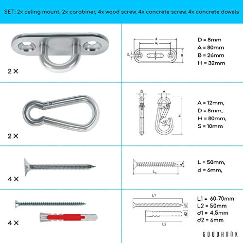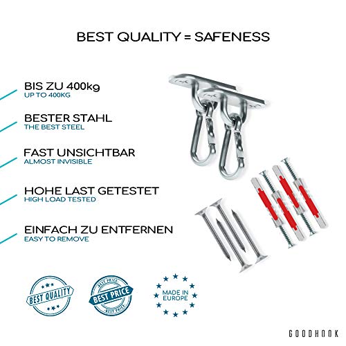 ✔Das Sonderpreis ist ein Set MAMOI x GOODHOOK. Das Set beinhaltet GoodHook Deckenhaken SET 400 kg mit Sicherheitsmerkmalen und universellem Einbau in Holz und Beton, und Swing MAMOI. Dieses Set bietet eine komplette Ausstattung, die vollen Spaß und Freude ermöglicht.