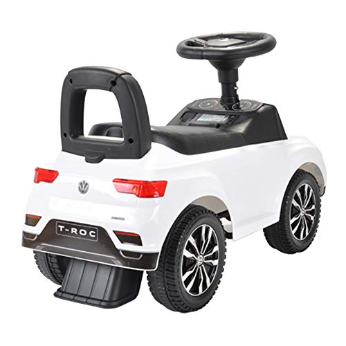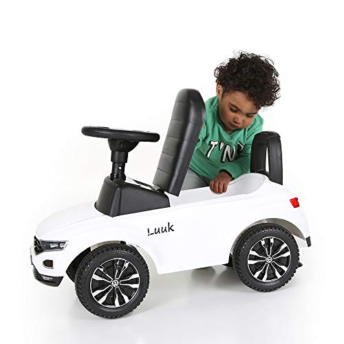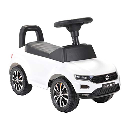 Das allercoolste Laufauto ist dieser Volswagen T-Roc von Bandits & Angels. Aufgrund der niedrigen Sitzhöhe, aber 26 cm, ist dieses Rutschauto bereits für Kinder ab 1 Jahr angemessen. Klappt man den Sitz hoch, somit öffnet sich ein Geheimfach, in dem man kleines Spielzeug oder Fundstücke abstauben kann. Ausdehnung 66x27x41 cm.
