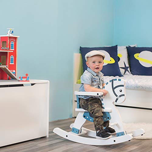 Dieses Holz-Schaukelpferd von Bon Bandits & Angels ist anstelle Brut ab 1 Anno Im Rahmen. Es hat einen abnehmbaren Sicherheitsrand am Standort ansonsten Fußstützen. Sitzhöhe: 28 cm. Model Jack ist 1 Anno oll.