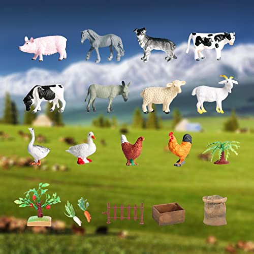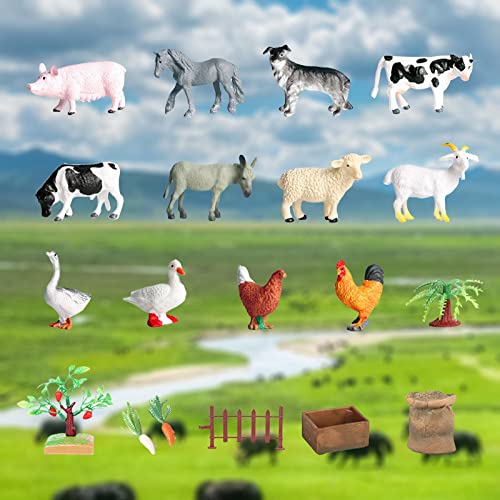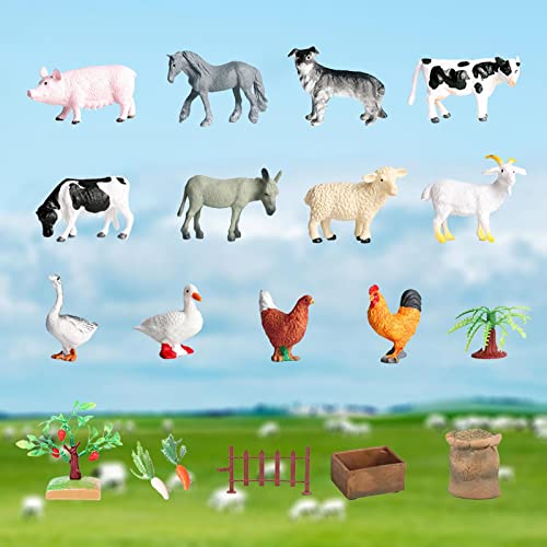 12 simulierte Bauernhoftiere mit Dekorationszubehör