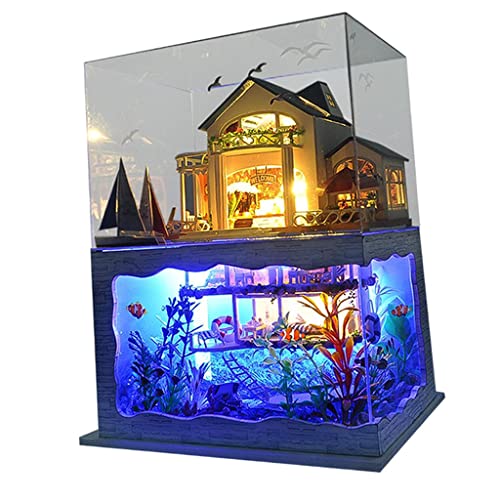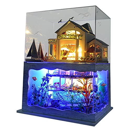 Baoblaze DIY Puppenhaus Möbel Kits Holz LED Licht Seaside Villa House Geschenk, Villa mit Abdeckung, 210 x 165 mm