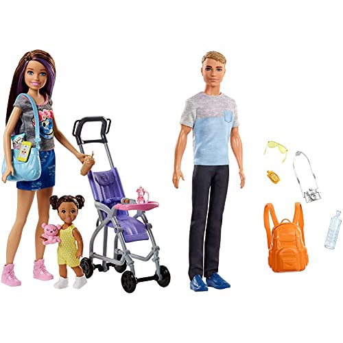 Barbie FJB00 Skipper Babysitters Puppen und Kinderwagen Spielset, Multi-Colour & FWV17 FWV15 – Reise Ken Puppe mit…