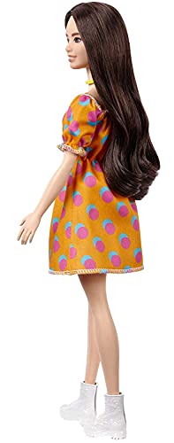 Barbie GRB52 – Fashionistas Puppe im schulterfreien Polka-Dot Kleid, Spielzeug für Kinder von 3 bis 8 Jahren