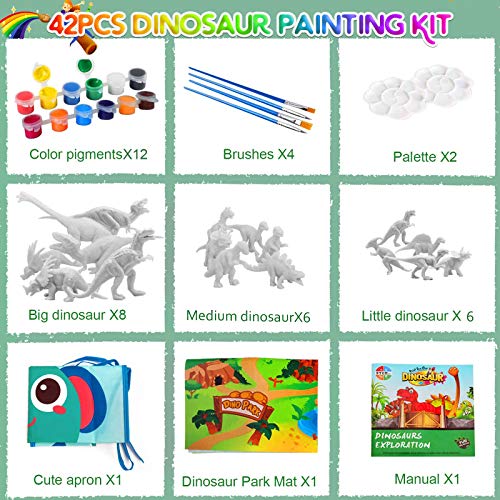 🦖【32-teilige Dinosaurier-Spielzeugsets】: Unsere Produkte umfassen 12 * unbemalte kleine Dinosaurier, 8 * unbemalte große Dinosaurier, 1 * Dinosaurier-Wissensatlas, 2 * Auflage-Farbe, 2 * Malpalette, 4 * Pinsel, 1 * Schürze, 1 * Dinosaurierkarte, 1 * Dinosaurieraufkleber.