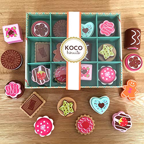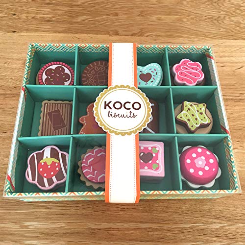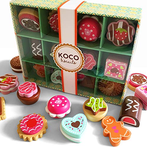 Spiel-Lebensmittel jeglicher holz für Kaufladen, Konditorei oder Spielküche. Die Kekse sind allerbest kinderfreundlich und bunt gestaltet und werden die Gäste bei nicht mehr da Tee Party in Verzücken versetzen. Macht ein schönes Geschenk – angemessen Alter 24 Monaten +.