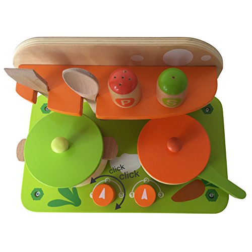 Die perfekte Spielküche sondern Ihren kleinen Koch. Das Kinderküchen-Set beinhaltet Küchenutensilien, Pfannen, Schneidebrett und Gewürze. Drehen Sie die Drehknöpfe, um Klickgeräusche zu machen und sondern ein realistisches Spiel zu sorgen.