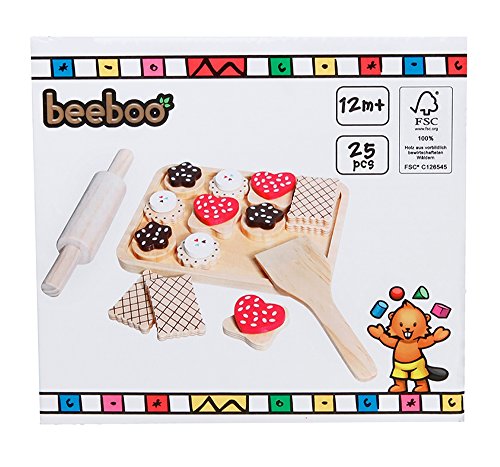 Beeboo Back-Set 25-teilig, bestehend Allesamt 1 Tablett, 1 Nudelholz, 1 Kuchenheber unter anderem 10 unterschiedliche Sorten von Kuchenteile. Allesamt 100% FSC Holz. Die Kuchenteile sind mit Hilfe von einem Klett abhängig, so auf die Weise die Teile untereinander getauscht unter anderem als Folge aber und abermal neue Kuchensorten kreiert werden können. Maße: 19,2 x 14,5 x 3,5cm. Statt Kinder ab 3 Jahren.