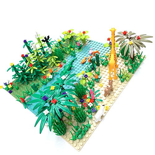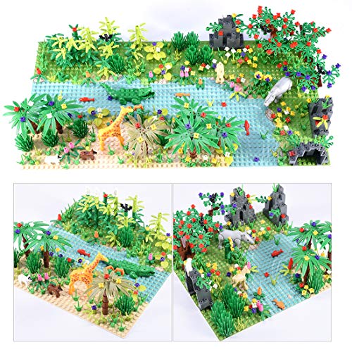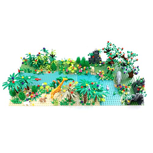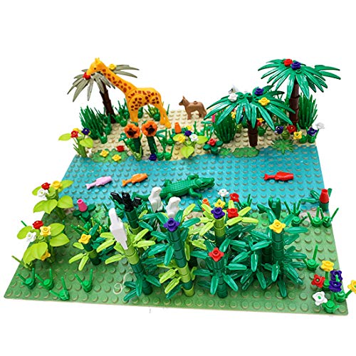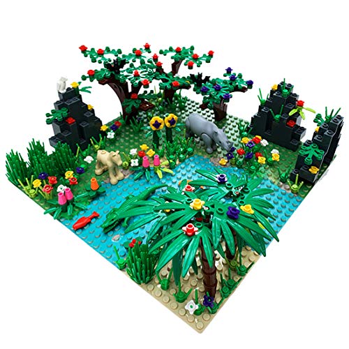 Tropischer Regenwald mit Bauplatten, Landschaft Wald Bausteine mit Tiere, Bäume und Blumen, Bausteinspielzeug Kompatibel mit Lego Baumhaus