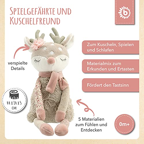 LIEFERUMFANG: 1x Plüschtier Reh. Größe ca. 44x14x5 cm; Gewicht: ca. 90 Gramm. Handwäsche. Ideal für Babys ab dem 0. Lebensmonat