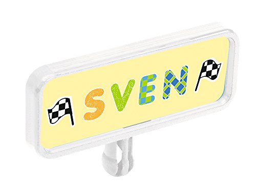 Einfache Anbringung – Das Kunststoffschild lässt sich an der vorderen und hinteren Kupplung befestigen. Es passt an die Bobby-Car-Modelle New und Classic und ist nach oben und unten einsteckbar