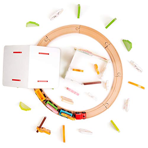 DICK GESCHNITTENE HOLZSPIELTEILE: Die Teile des Eisenbahn-Sets sind fettleibig geschnitten, sodass sie zugunsten kleine Finger leicht zu handhaben sind.