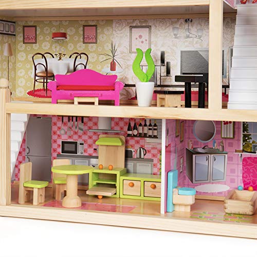 DREISTÖCKIGES HOLZPUPPENHAUS: Ein dreistöckiges Holzpuppenhaus rundherum per Julia-Balkon ansonsten 2 Treppen.