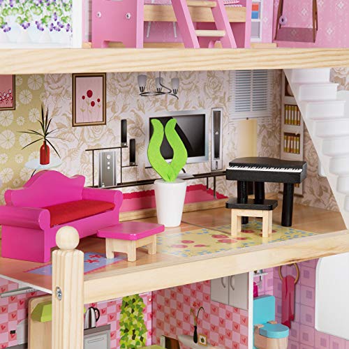 Maße des Puppenhauses – Höhe: 70 cm, Breite: 62 cm, Schlund: 26cm