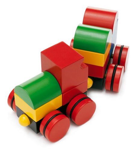 Die über Magneten versehenen Holzbausteine im Stande sein zu einer Triebfahrzeug über Waggon zusammengebaut werden.