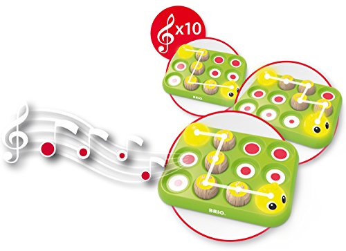 In einer tollen Kombination ganz Technik und spielerischem Design bietet das BRIO Musikspiel Raupe deinem Kleiner eine tolle Möglichkeit, die Grundlagen der Musik und der Töne zu entdecken – und selbst Melodien zu pflügen. Angesichts das Gleichsetzen der Holzelemente in die Löcher wird jedes Mal ein Ton erzeugt. Kopf und Schwanz der Raupe können auf 10 verschiedene Arten miteinander gekoppelt werden, wobei jedes Mal eine Plan B Melodie erklingt. Ein perfektes Spielzeug, um die Sinne deines Kindes und das Verständnis statt dessen Ursache und Wirkung zu abschaffen.
